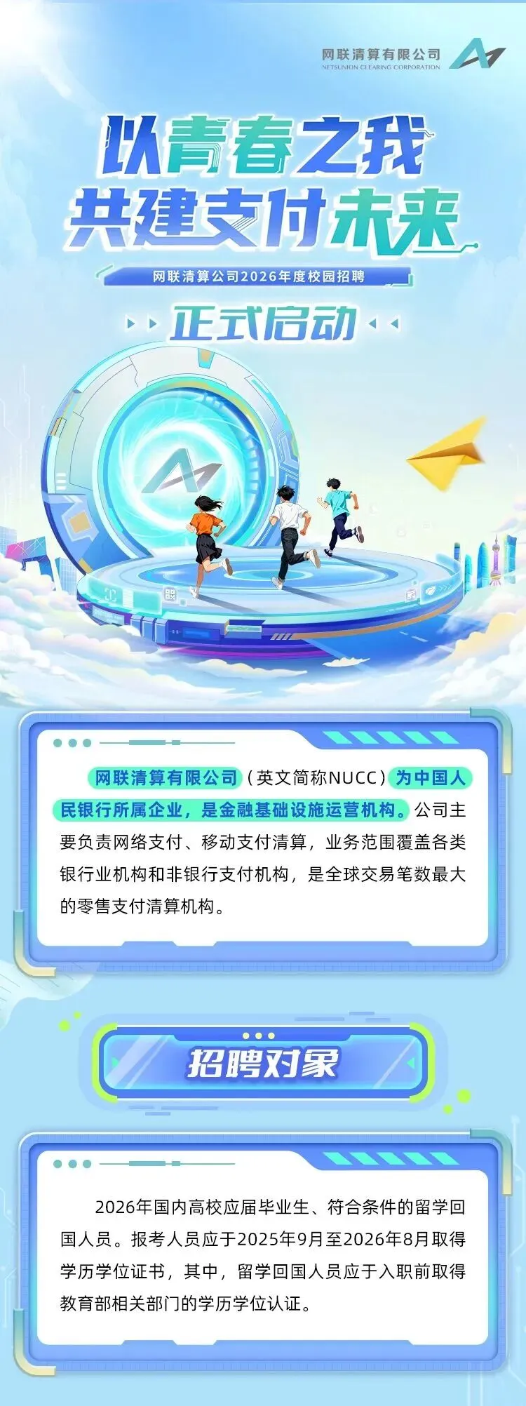 【职通央国企】网联清算2026年度校园招聘正式启动,点击直达!