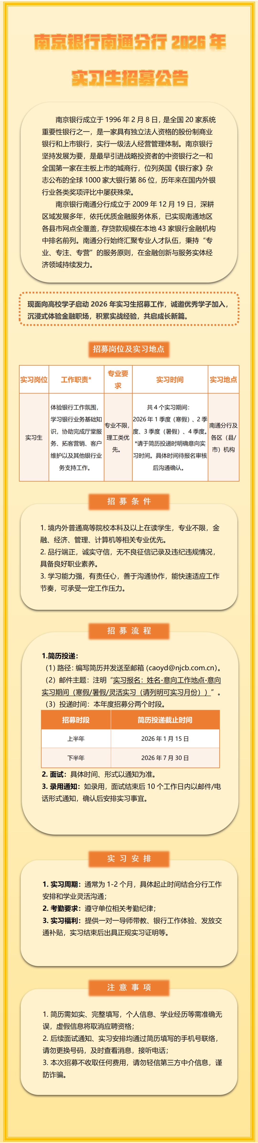 【央国企实习】南京银行2026年实习生招募启动,不限专业,速投!