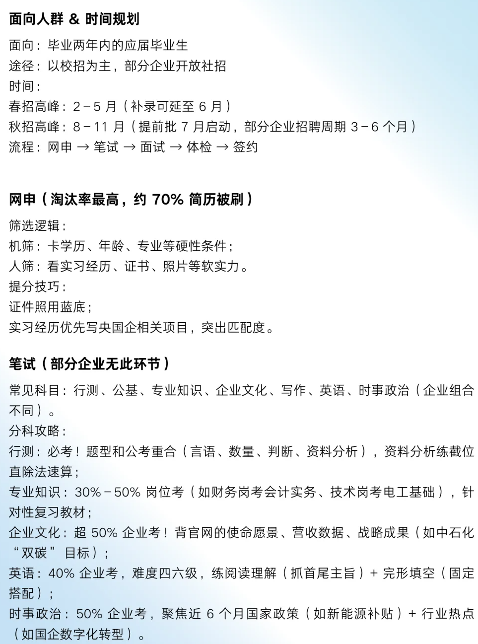 应届的同学们,自己琢磨央国企备考是不是特让人崩溃,刷招聘信息到凌晨,不是错过时间,就是简历石沉大海。看着同届同学拿到 offer,急得掉头发,时间真的耗不起