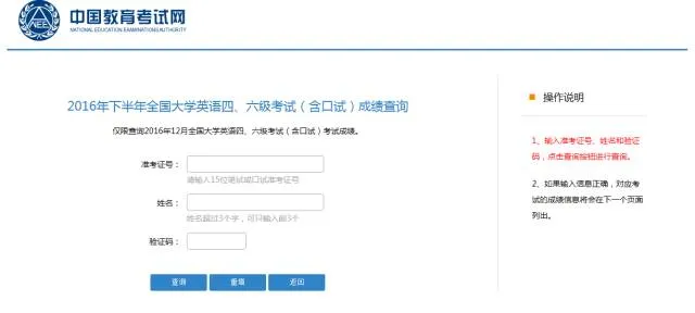 第二、个人姓名、考试级别和准考证号输入有误,请重新检查后再输入。特别提醒,四六级查分期间只能查询这次考试成绩,不能查询以往考试成绩,也就是这一阶段只能查这一阶段的考试成绩。
