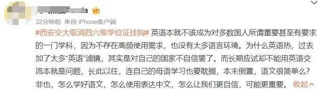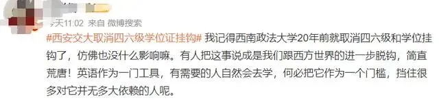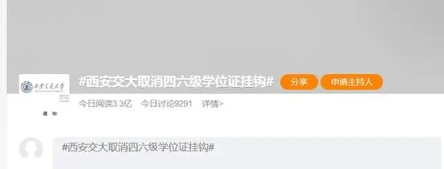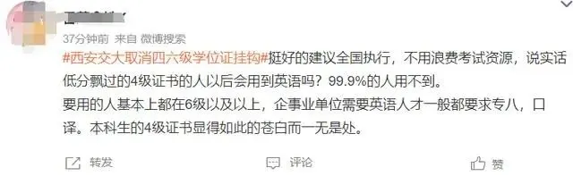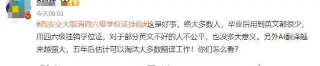 近日,网传西安交通大学不再将大学英语四六级考试成绩作为学位授予条件,引发网友强烈关注。