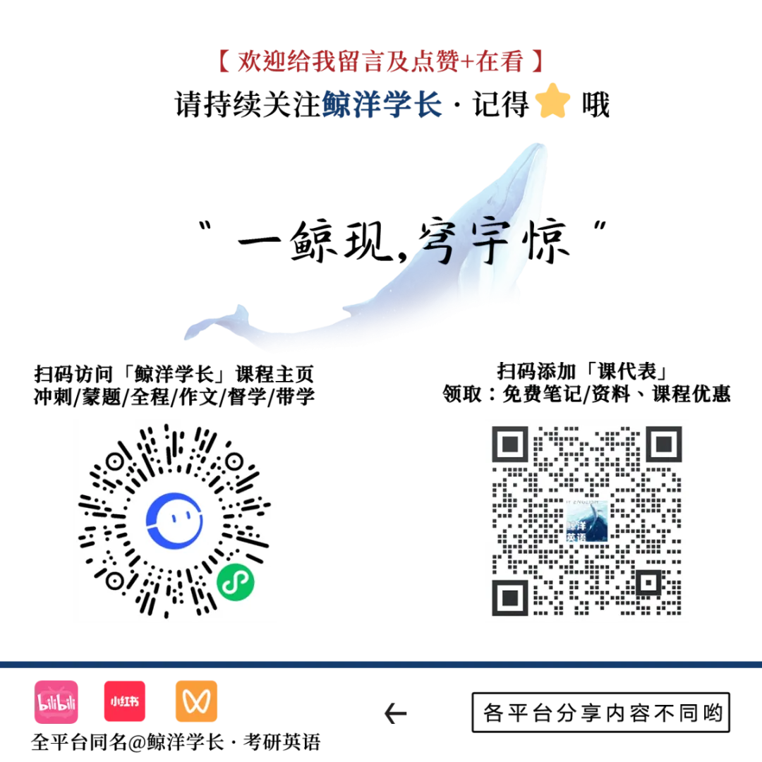 所以各位考研同学,趁着考研复习英语的同时,在这一年里还是尽量吧英语四六级通过一下,考研复习英语的这一年里基本上是一个学生英语水平最高的一年,所以,就跟着鲸洋学长一起提升英语水平的同时,把四六级一起通过了吧!