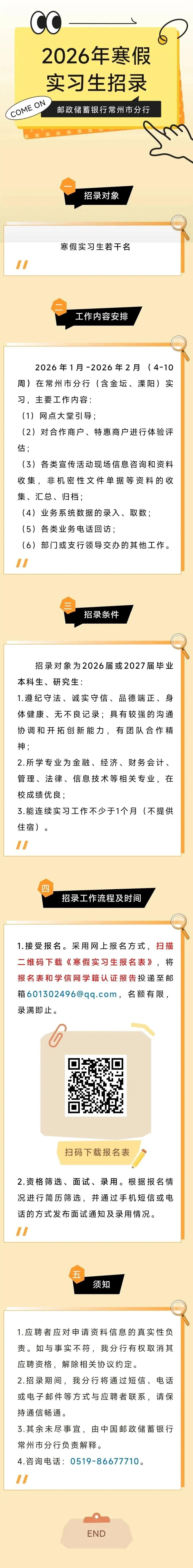 【职通央国企】中国邮政储蓄2026年寒假实习生招聘启动,26-27届速投!