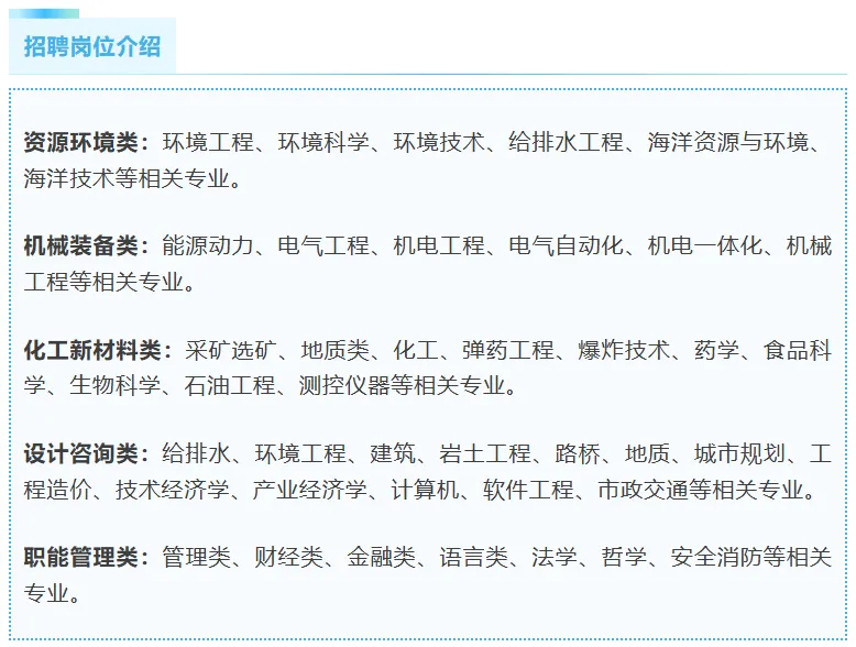 资源环境类、机械装备类、化工新材料类、设计咨询类、职能管理类。