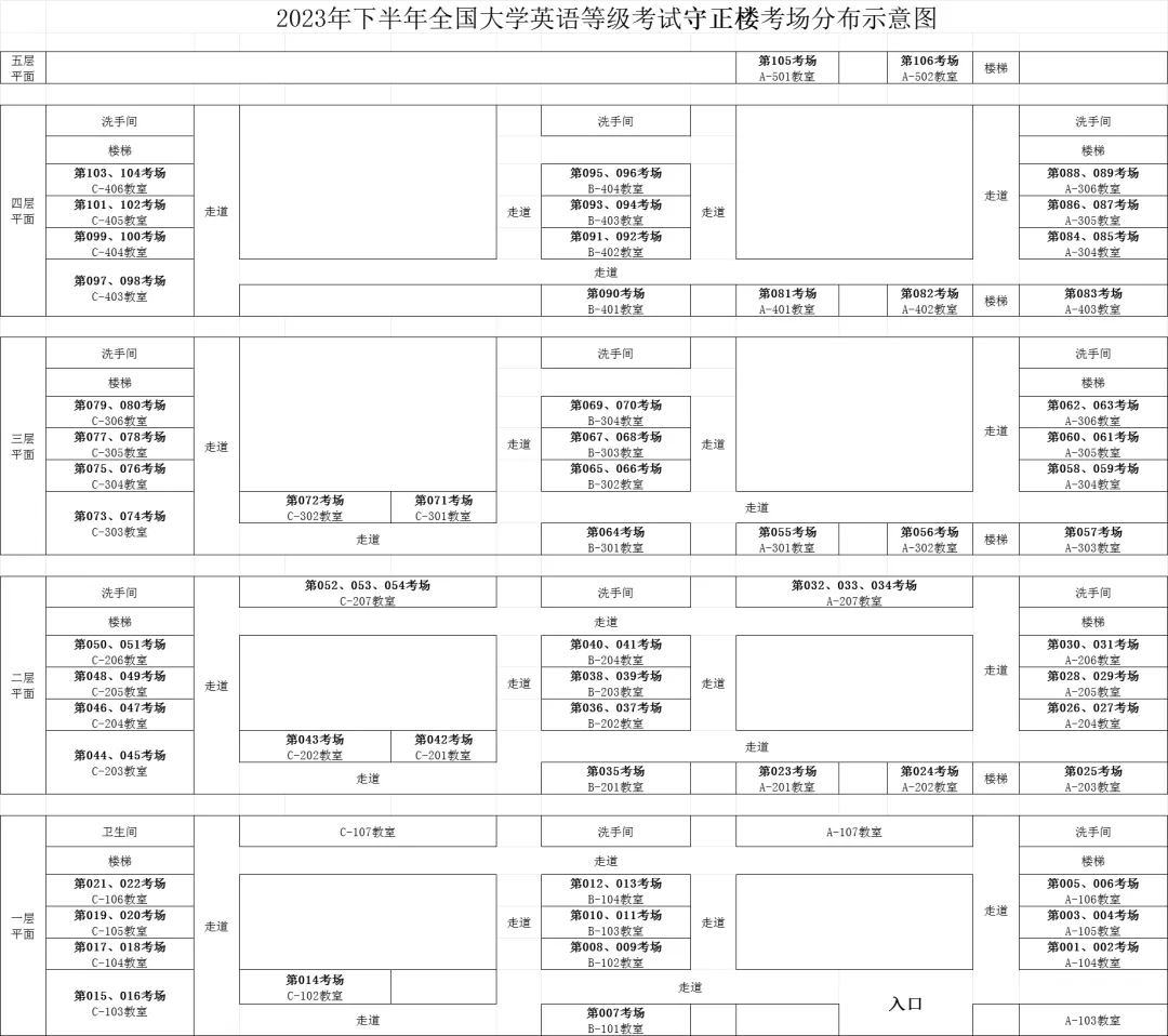 2023年下半年全国大学英语等级考试、高校大学英语应用能力B级考试定于2023年12月16-17日两天进行(12月16日上午考英语四级,下午考英语六级,12月17日下午考英语应用能力B级)。