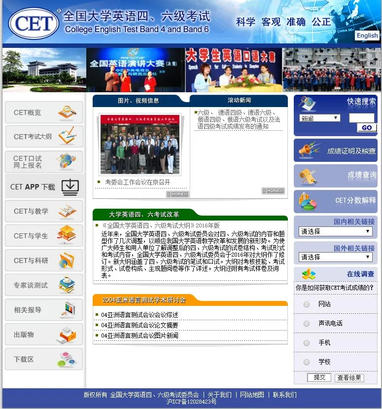 方式1:登录www.cet.edu.cn网站(全国大学英语四、六级考试网站),点击栏目进行报名,完成信息填报、选择考点、网上缴费等报名手续。