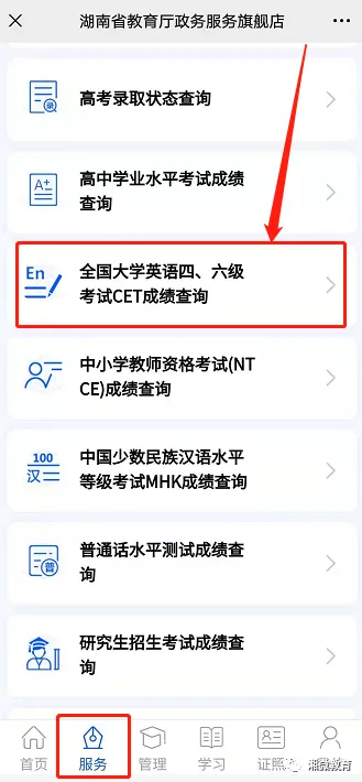 4、通过湖南省教育厅官方微信公众号“湘微教育”进行查询。