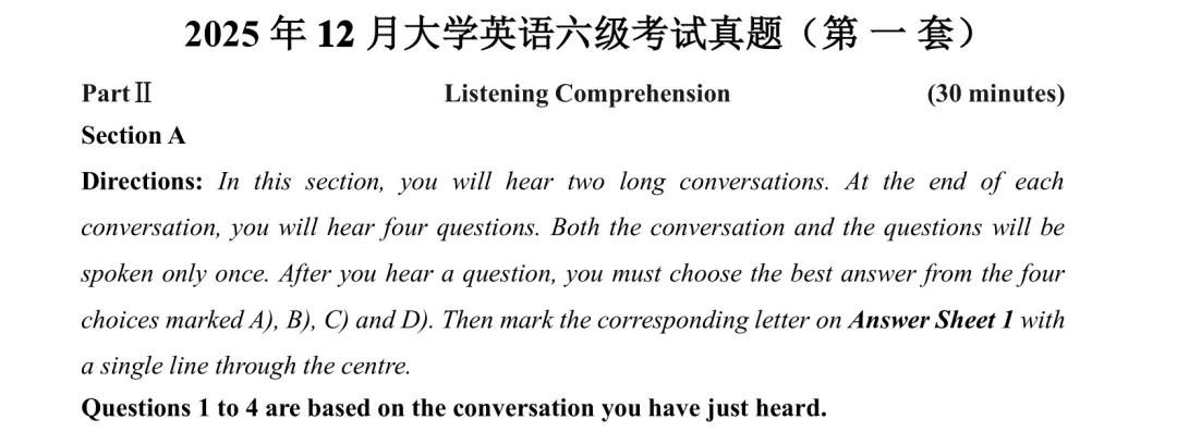 2025年12月英语六级真题试卷及答案解析(第一套)
