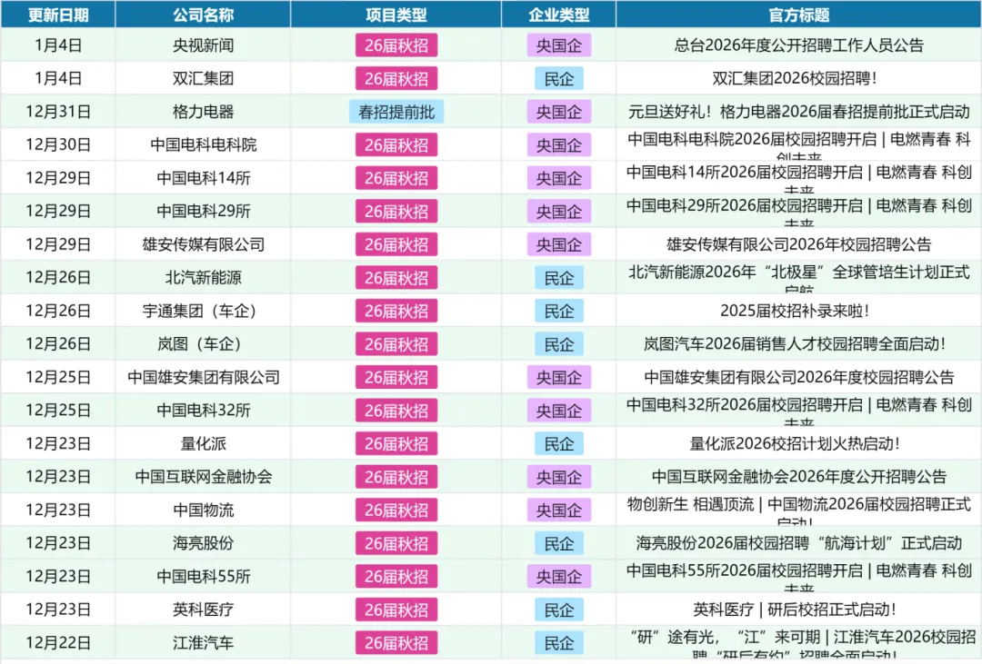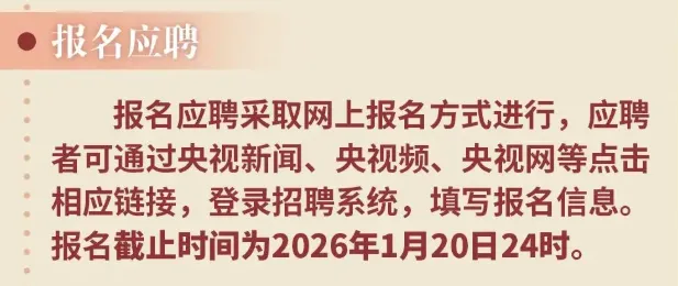 第一,关注时间节点:央媒等央国企招聘有严格的时间安排。以总台招聘为例,报名时间从2025年12月30日至2026年1月20日,截止就意味着彻底错过机会;