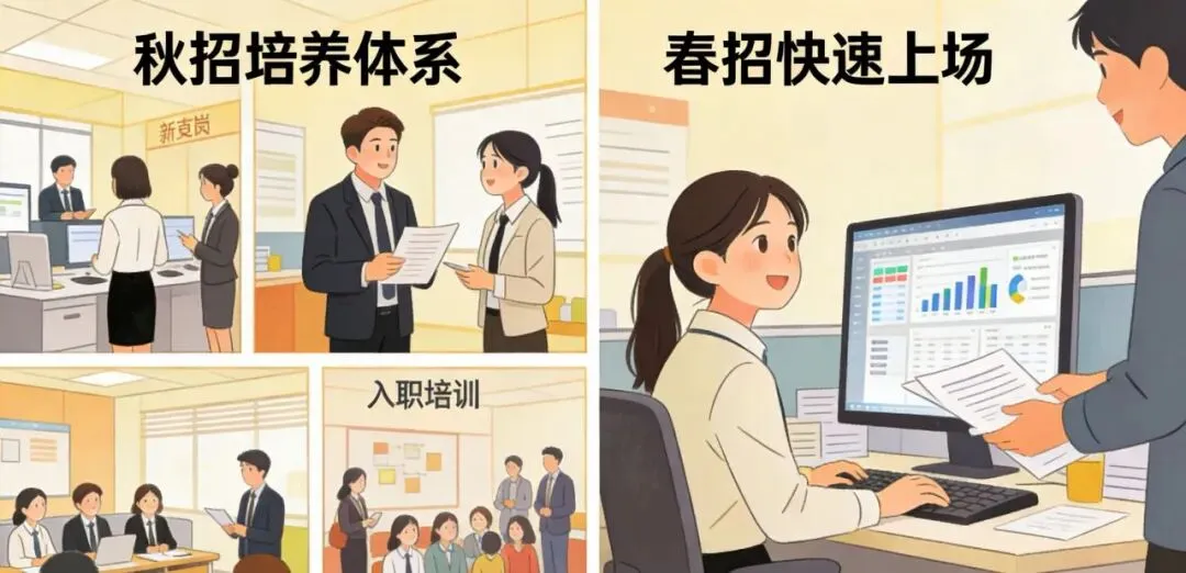 培养资源上也不一样,秋招录取的话,能享受到全套培养福利,比如1到2年的轮岗、专属导师带教、系统的入职培训,帮你稳稳过渡到职场。春招因为岗位急,基本是直接上岗,没什么系统培训,但好处是能快速接触真业务,适合适应能力强、想赶紧攒经验的同学。