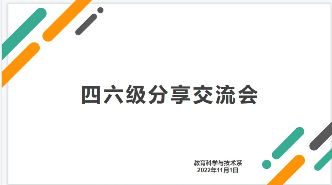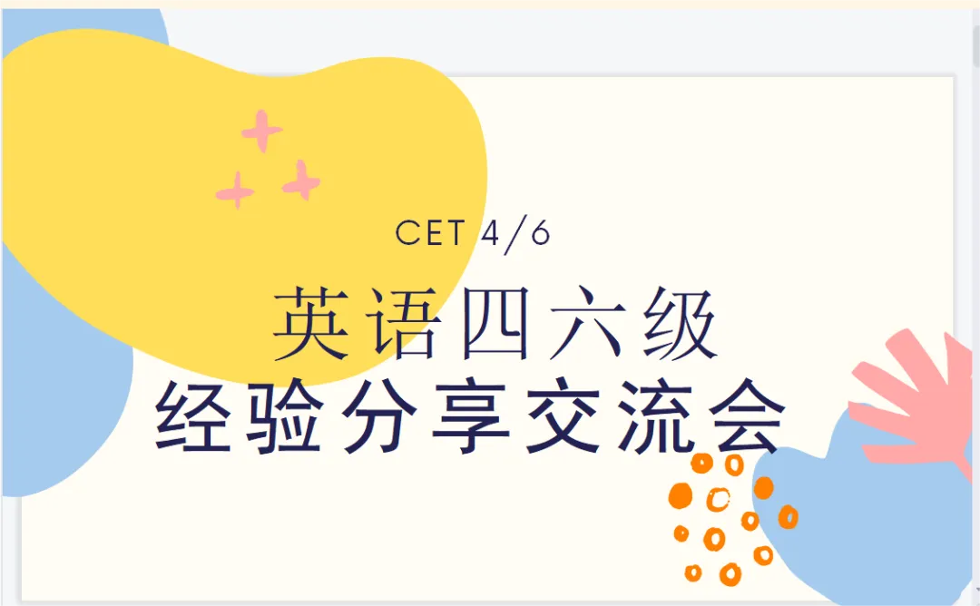 李珊珊从三个方面与同学们分享交流,分别是报考要求、题型结构和备考方法。强调了报考四六级的条件和时间以及注意事项。