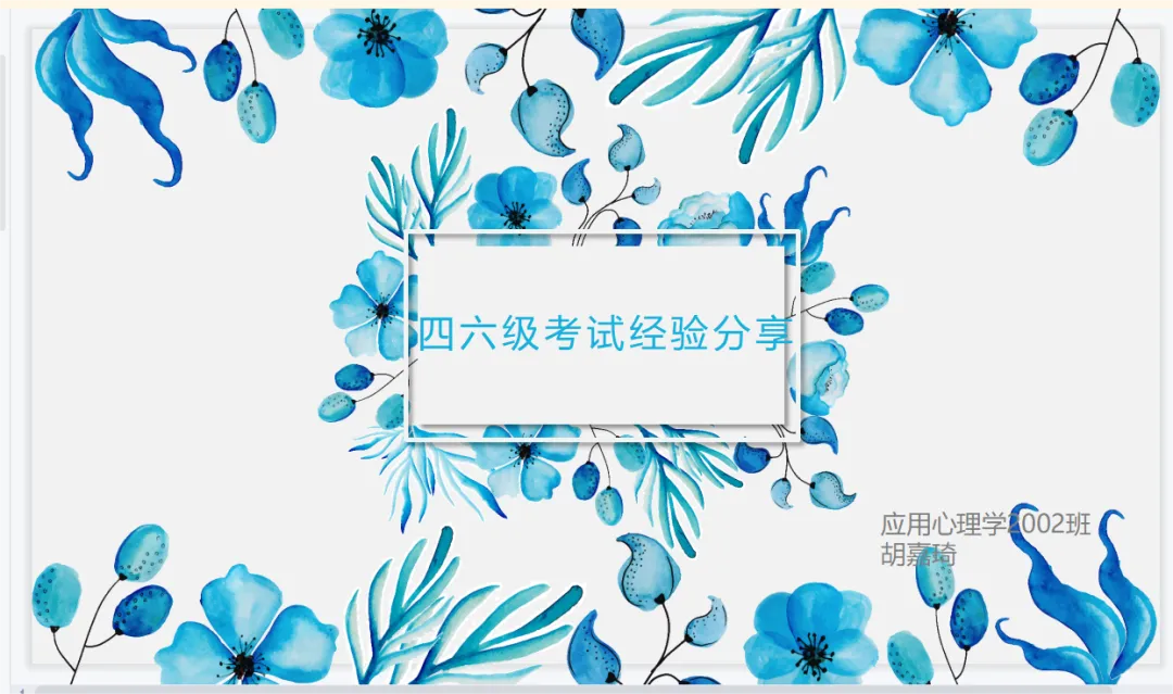 李思璇先是介绍了四六级的题型以及做题顺序,然后向大家推荐了参考书目和软件,并列出作文的常见类型及模板,提醒大家考试的时候要带好要用的东西。