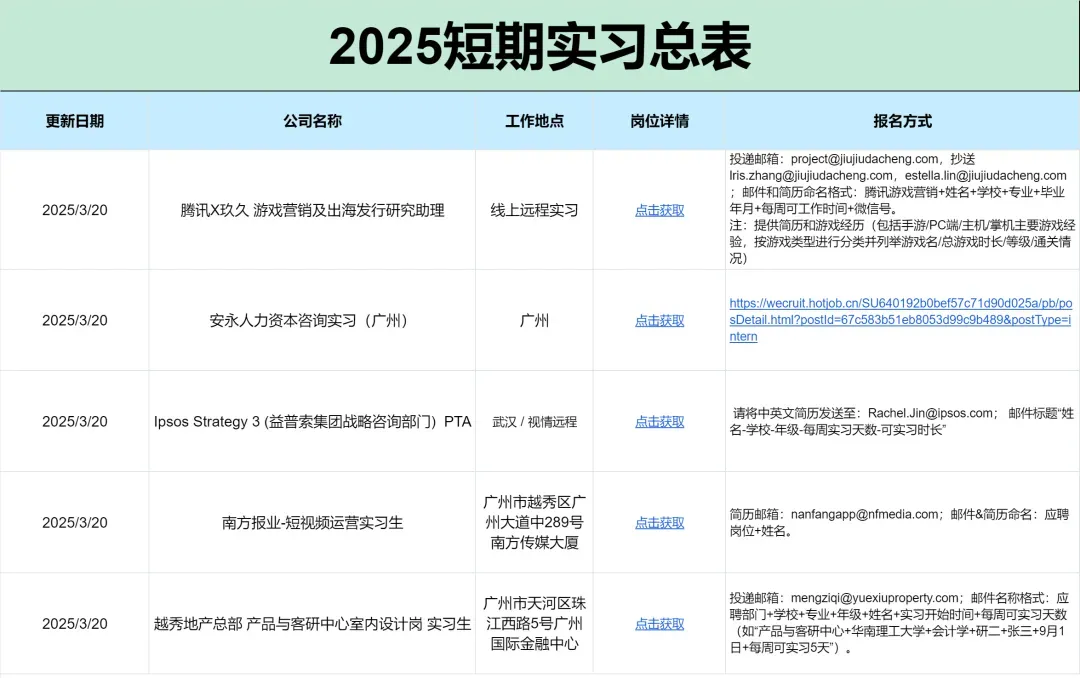 后台回复“短期”即可获得短期实习相关信息