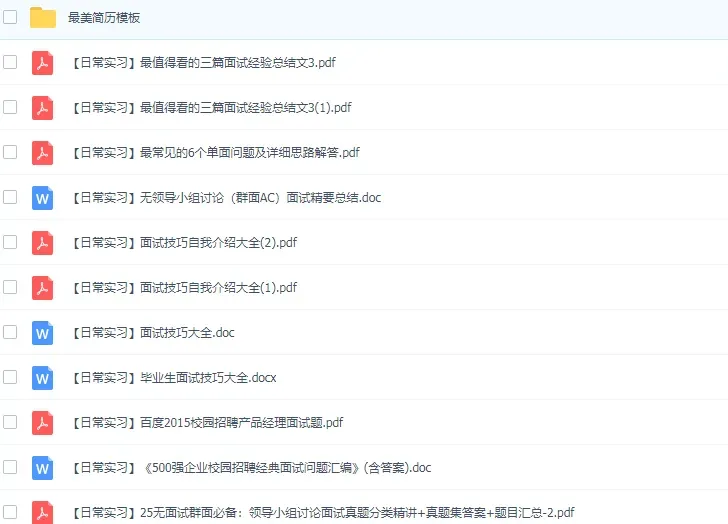 获取更多汇总表和各名企求职资料