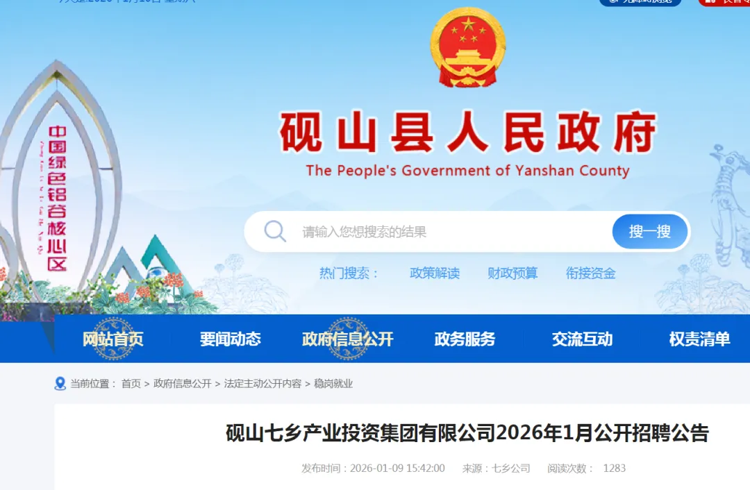 文山州砚山七乡产业投资集团有限公司2026年1月公开招聘公告