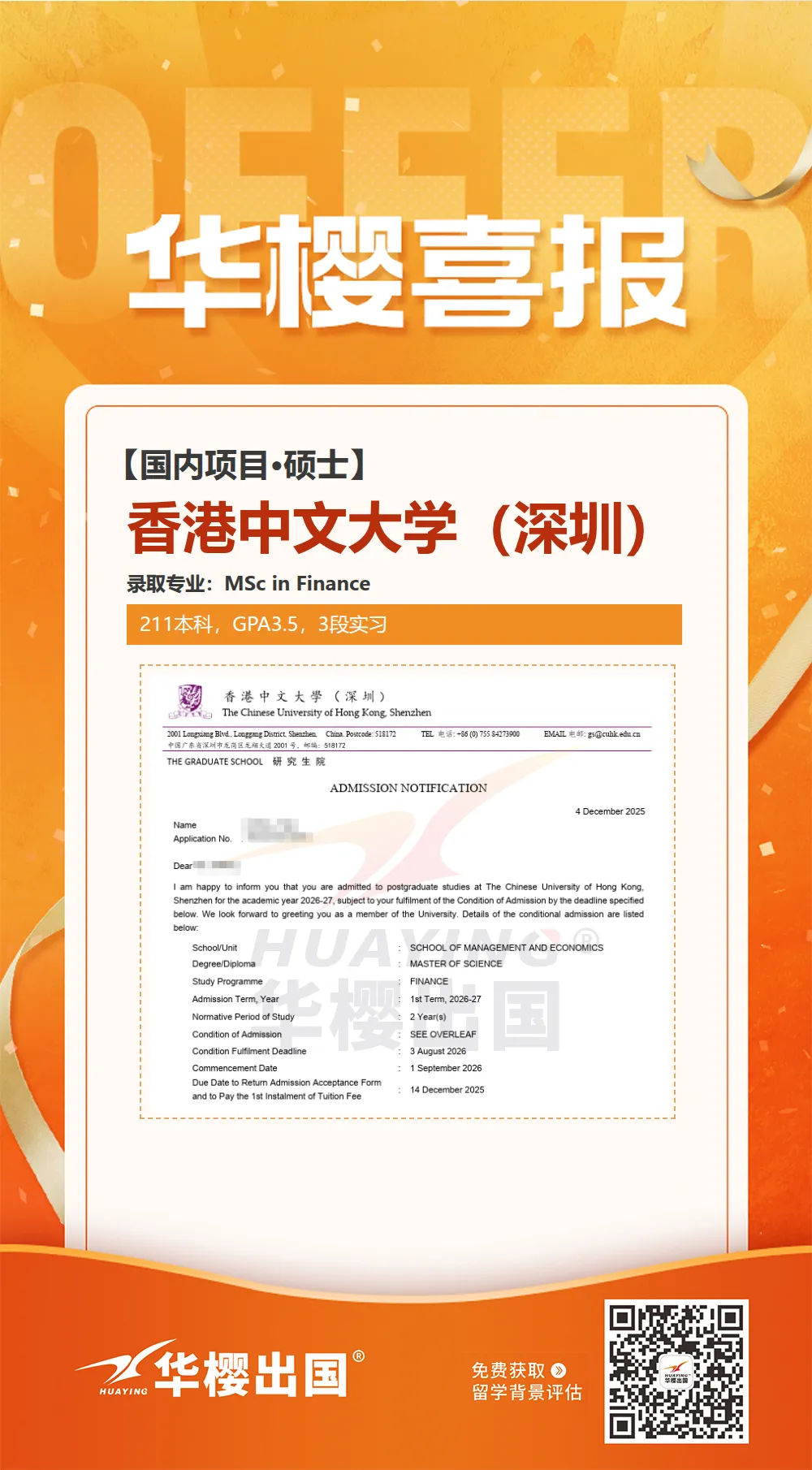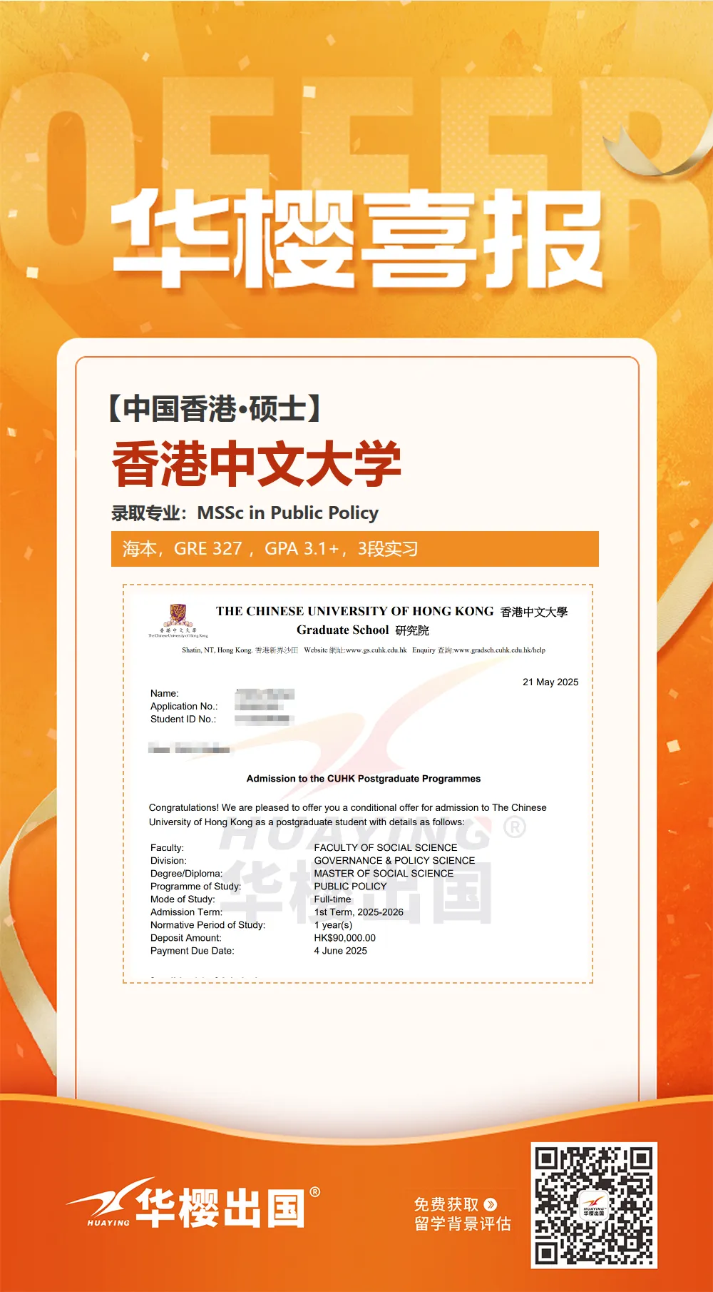 如果你已决定将 香港中外合办大学硕士 作为你的备选或主申路径,面对复杂的院校信息、申请要求和紧迫的时间,专业高效的指导能让你事半功倍。华樱出国可以为您提供: