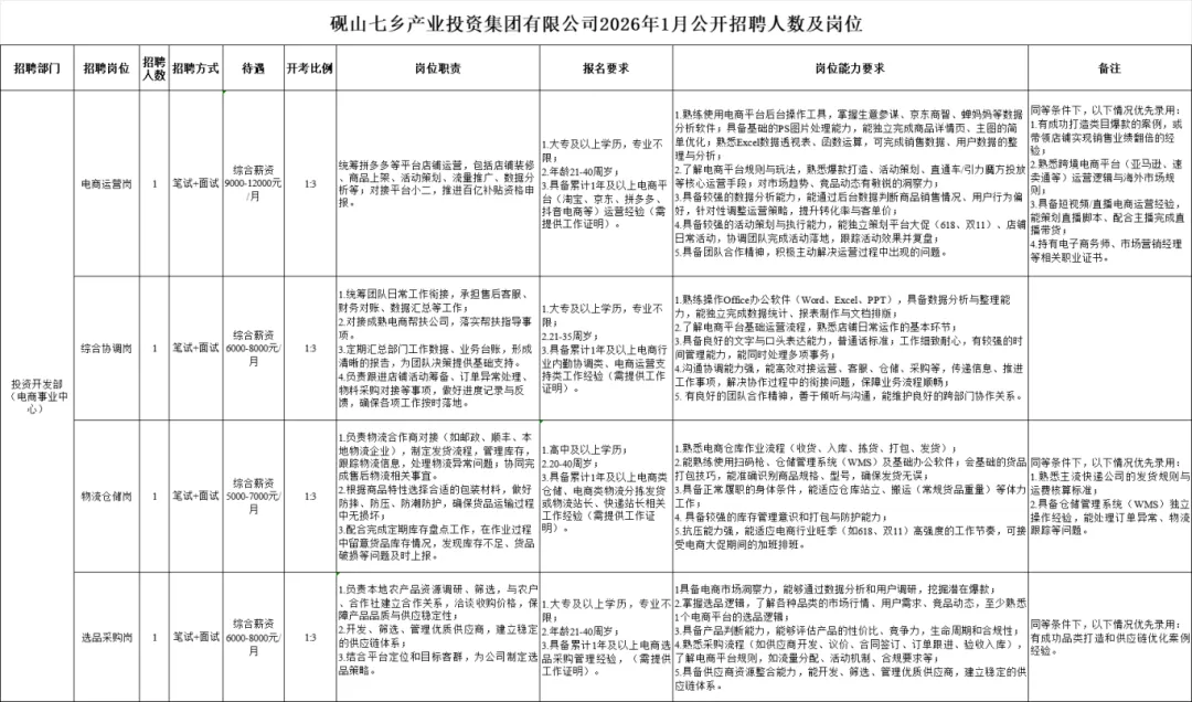 附件1:砚山七乡产业投资集团有限公司2026年1月公开招聘人数及岗位.xlsx