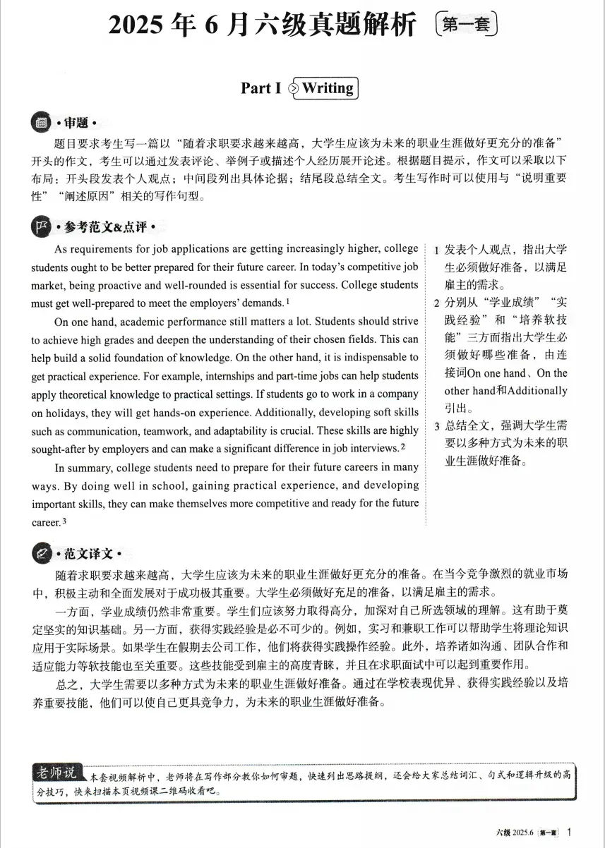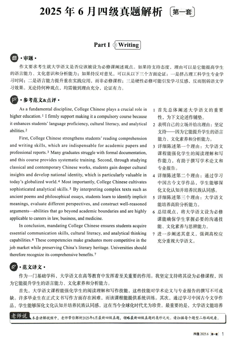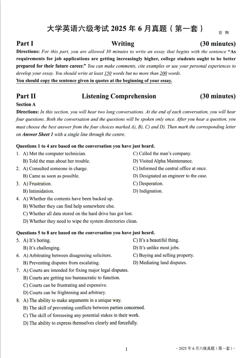 2025年6月英语四级CET4和六级CET6真题试卷、听力音频及答案解析(三套全)
