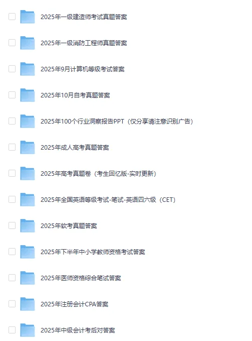 2025年所有资料我分享给大家了,资源分享是通过夸克网盘的,大家可以保存好需要资源的总链接,大家在链接里保存了资料后如果需要更新的资料就要去之前的链接里重新保存,夸克网盘需要保存在自己网盘才能看完整的,不然只能试看!