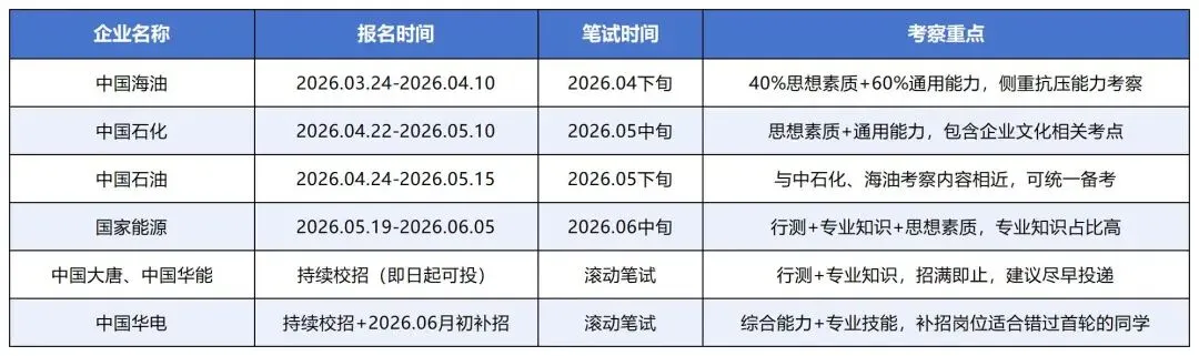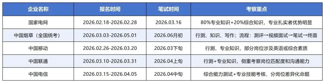 - 应届生身份珍贵:央国企春招主要面向2026届应届毕业生(毕业时间2025年9月-2026年8月,非大陆高校以学位认证时间为准),错过春招,应届生身份优势将大幅减弱。