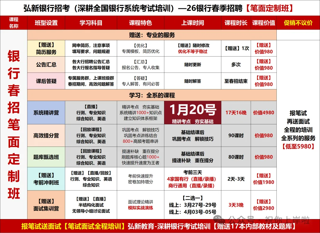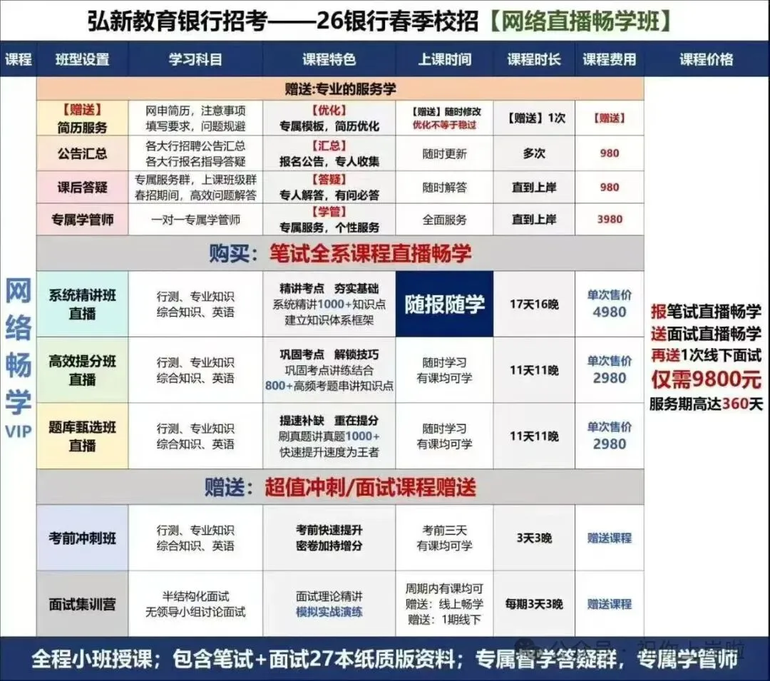 【报班赠送的服务】简历优化,各大银行招聘公告汇总,专属服务群,上课班级群,春招期间高效问题解答