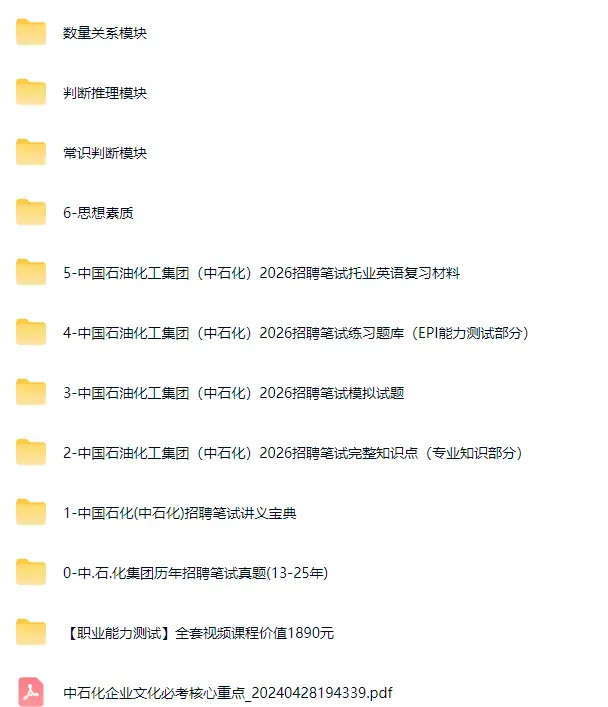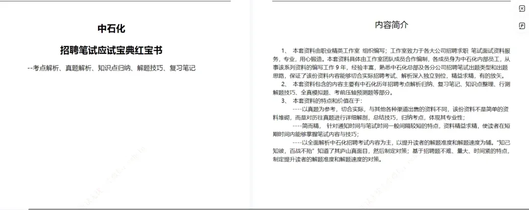 为了帮助各位小伙伴顺利拿到offer,小编为大家准备了40页【中石化集团招聘最新笔试应试宝典红宝书讲义(完整版) - 真题解析、考点知识点归纳、模拟题练习】,公众号后台回复【中石化】直接领取~