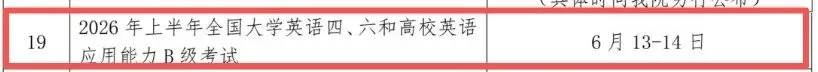 2026年上半年全国大学英语四、六级考试时间为