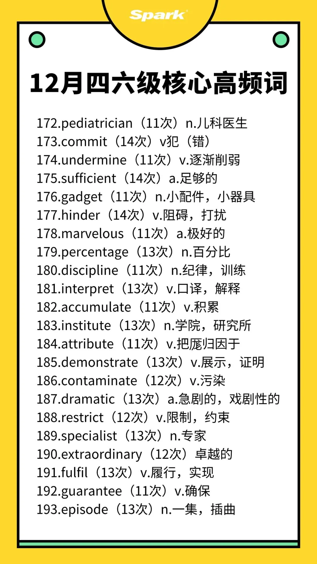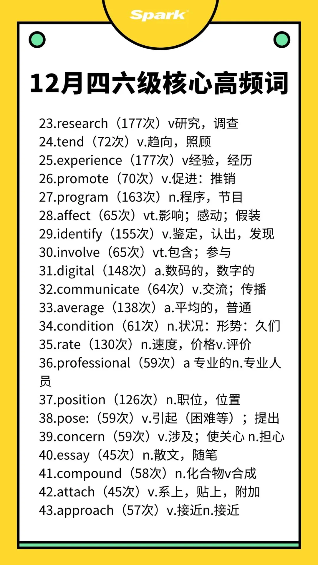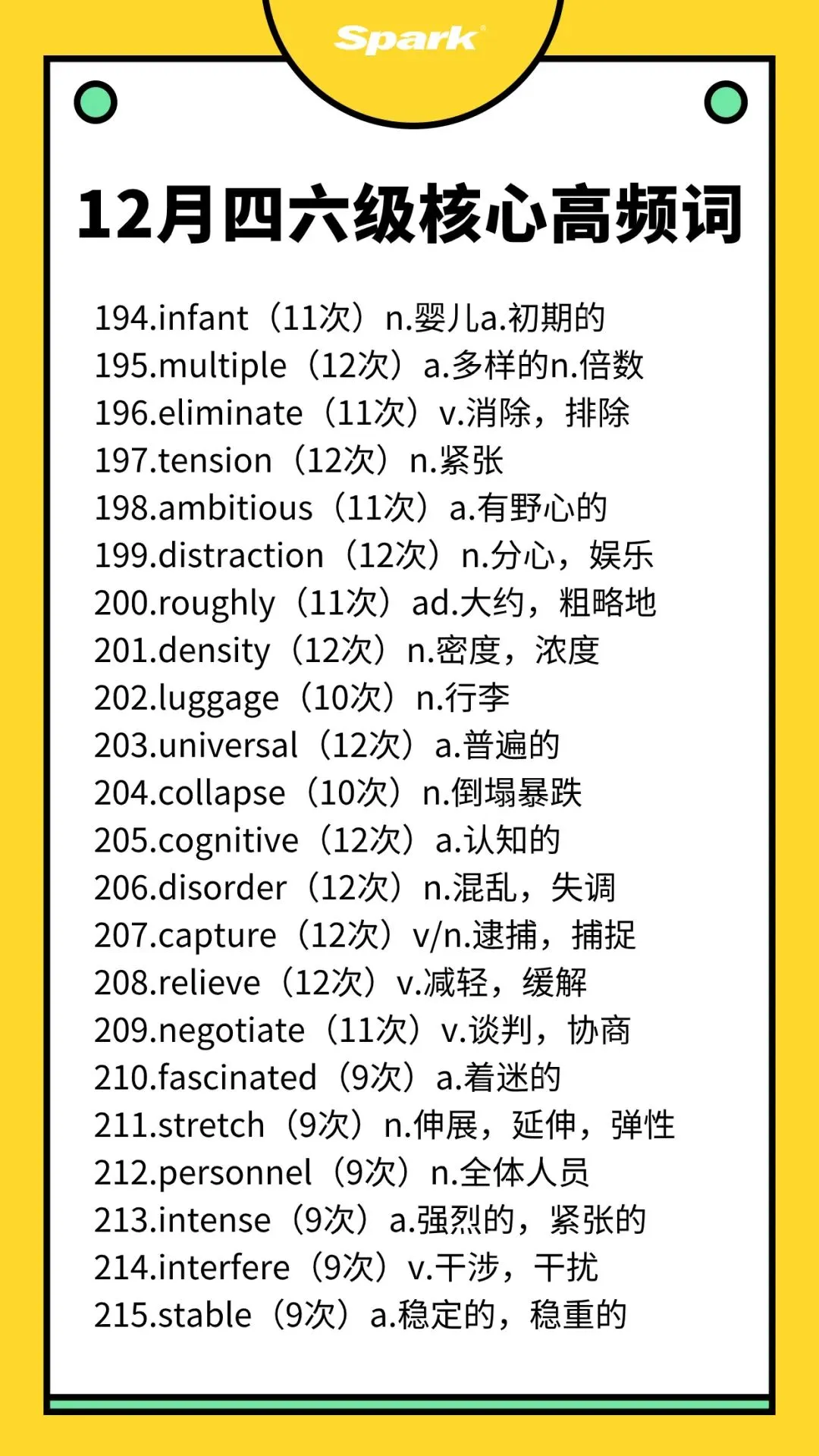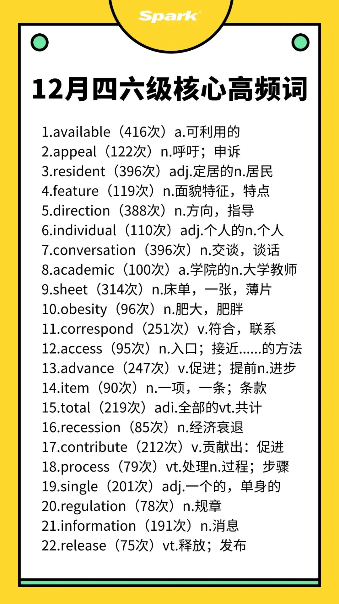 >英语四六级考过10次以上的高频词汇总!