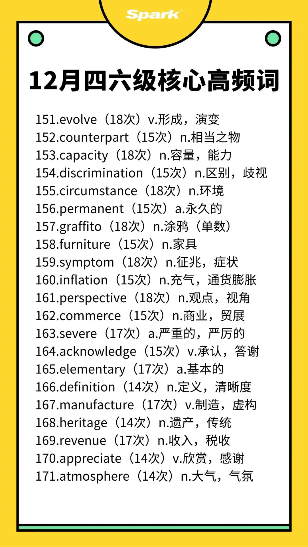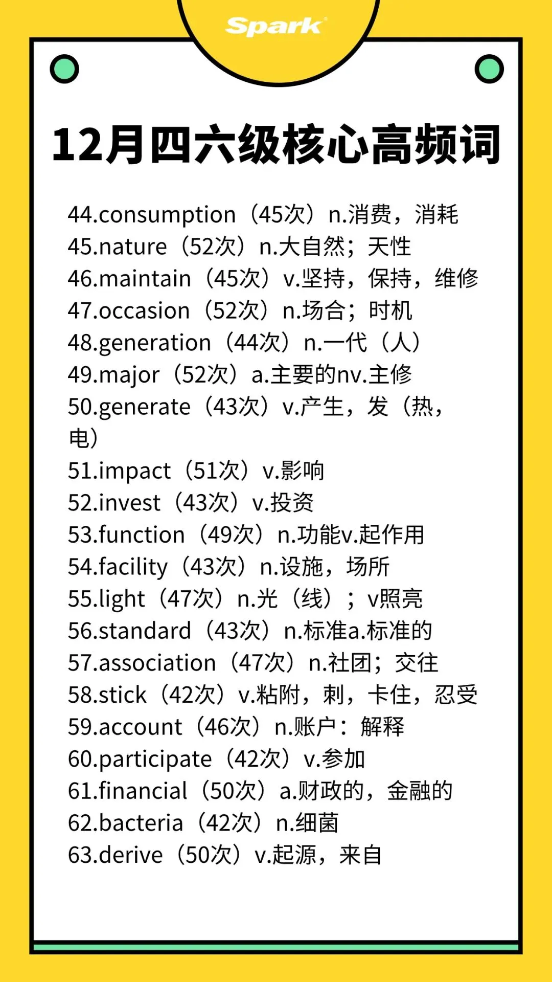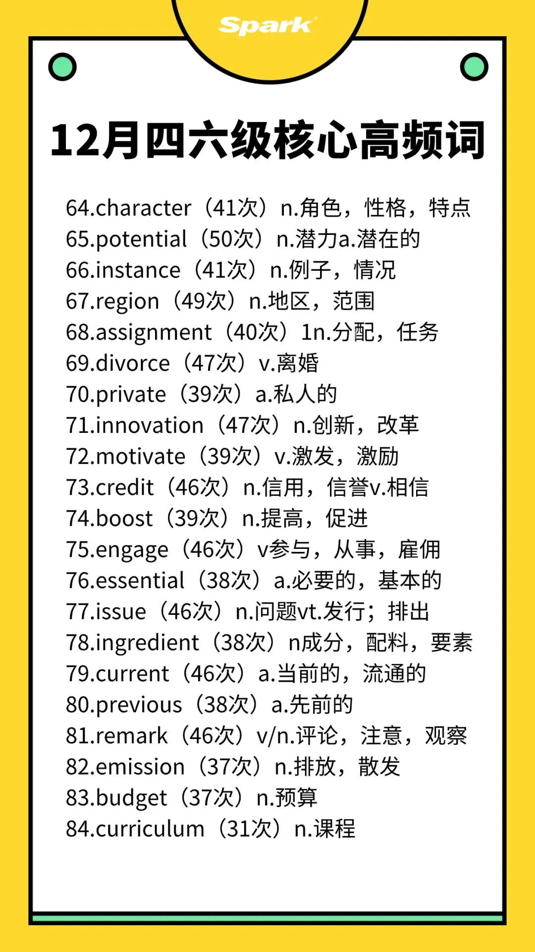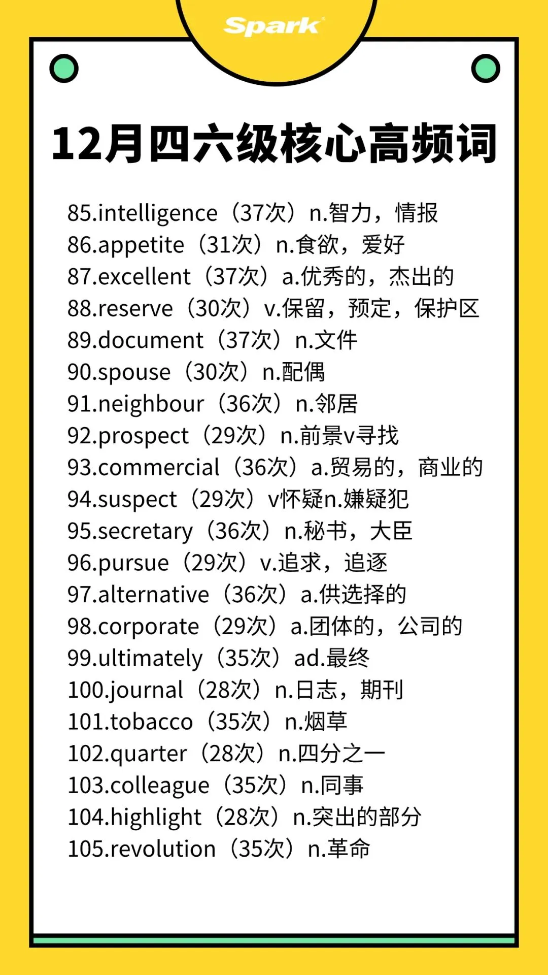>英语四六级考过10次以上的高频词汇总!