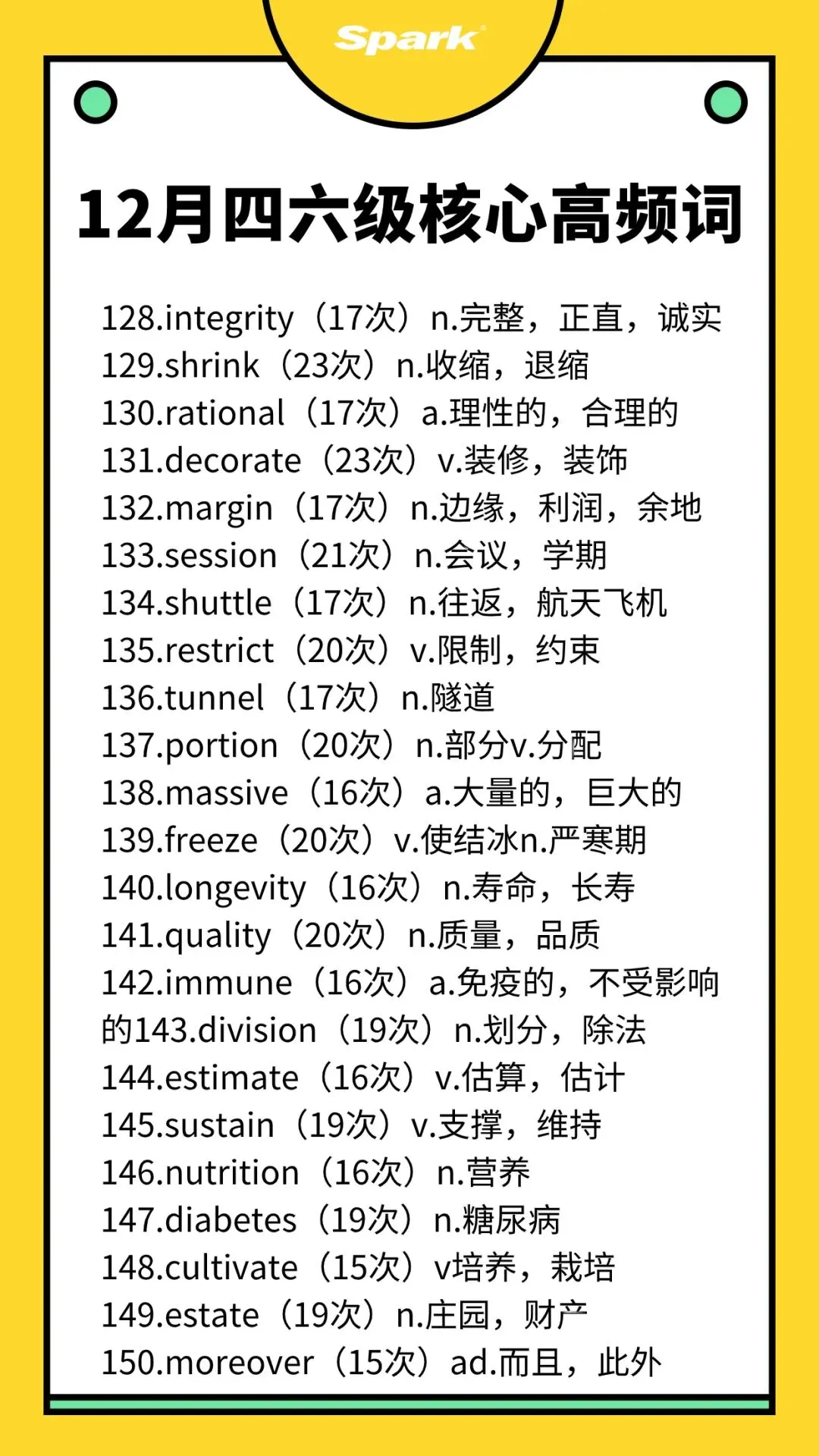英语四六级考过10次以上的高频词汇总!