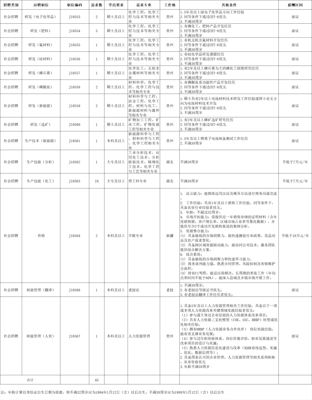 省属大型国企,社招45人!六险二金,大专起报,贵州磷化集团招聘公告(1月11日截止)