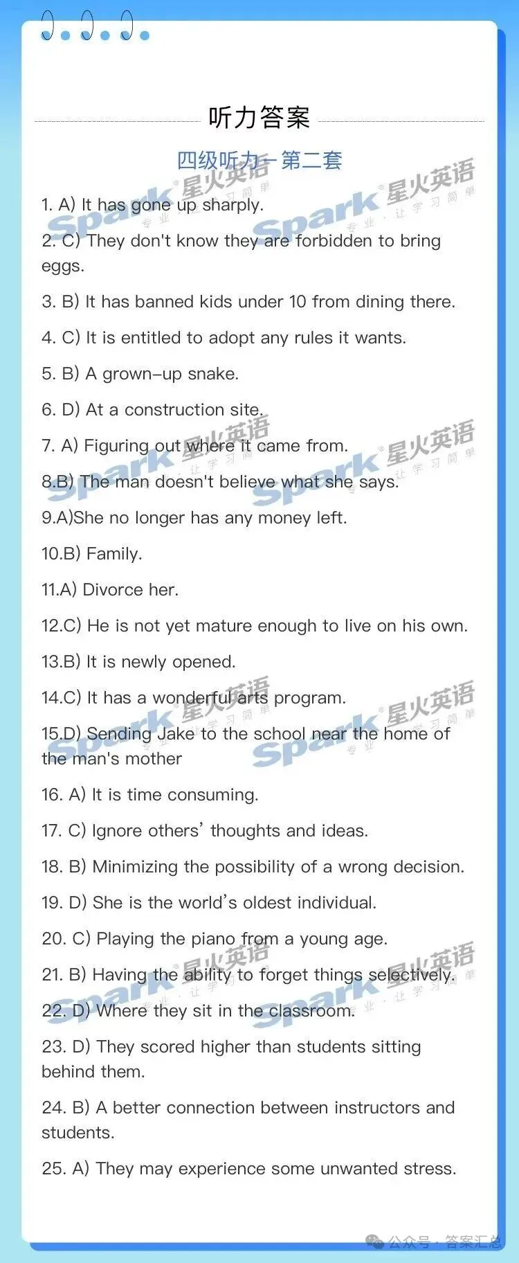 2025年12月英语四级真题试卷及答案解析(第二套)