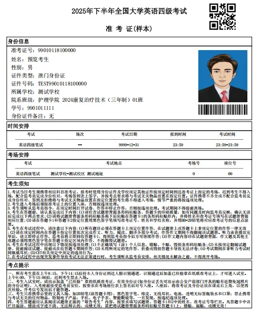 2025年12月5日9:00 起可登录全国大学英语四、六级考试报名网站http://cet-bm.neea.edu.cn打印笔试准考证。
