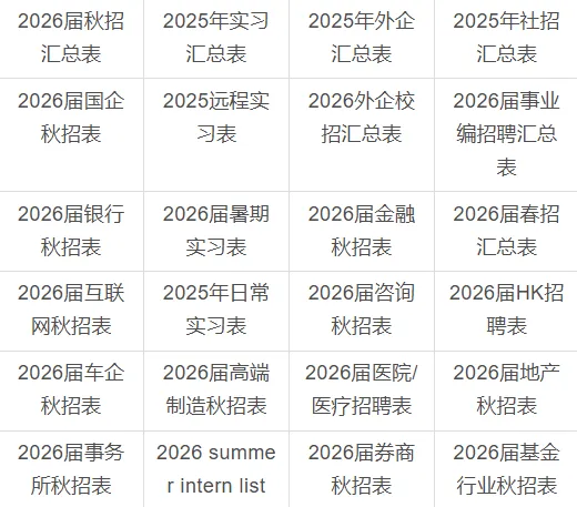 秋招汇总表、社招汇总表、实习汇总表