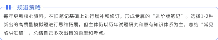 沿用旧资料、旧笔记,不愿根据新的学习需求和考试趋势进行调整。或者频繁更换资料,盲目尝试各种“捷 径”、“秘籍”,分散注意力。
