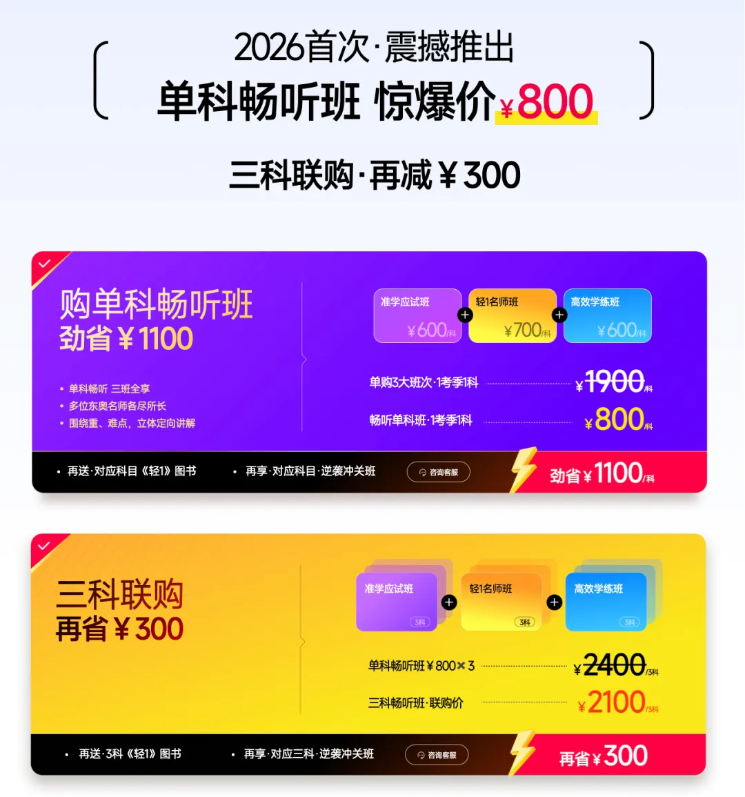 单科畅听班低至¥800起,初级学员购畅听班领券至高省¥1200,快扫码领取专属优惠⬆️