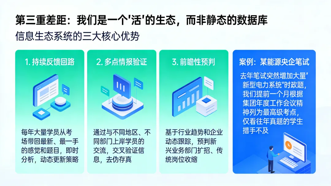 我将免费为您开启一次我们的内部数据库,提供一份《您目标企业的报考信息差分析简报》,您会看到至少3个您此前完全没想到的备考盲点和机会点。