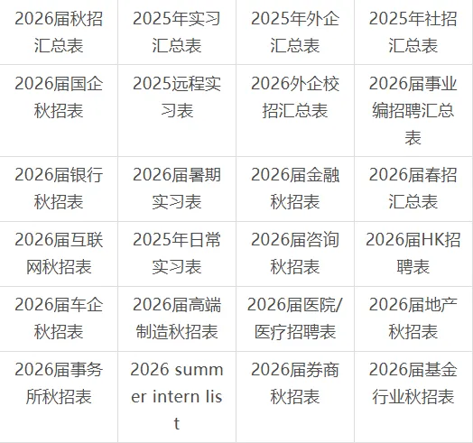 秋招汇总表、社招汇总表、实习汇总表