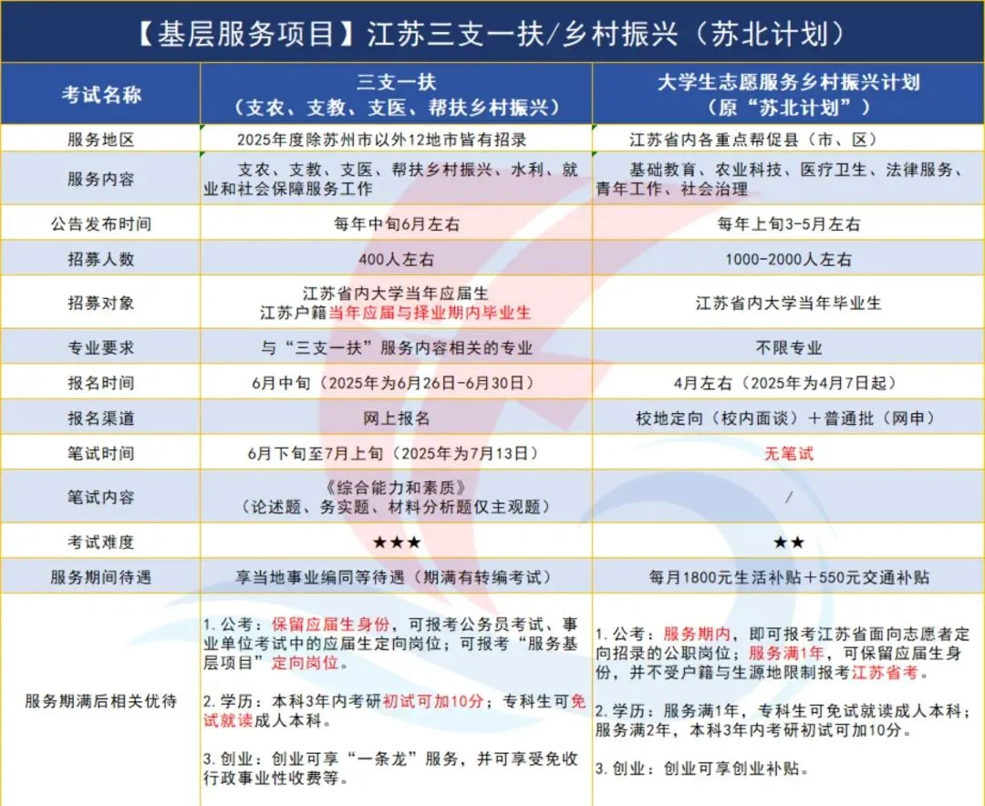 江苏三支一扶公告发布及考核期通常集中于毕业季时段,录用后首先可获得对应考公考编考研优待政策,其次可于服务器满时选报当年基层服务人员定向转编考试,是较多应届考生的转进首选。