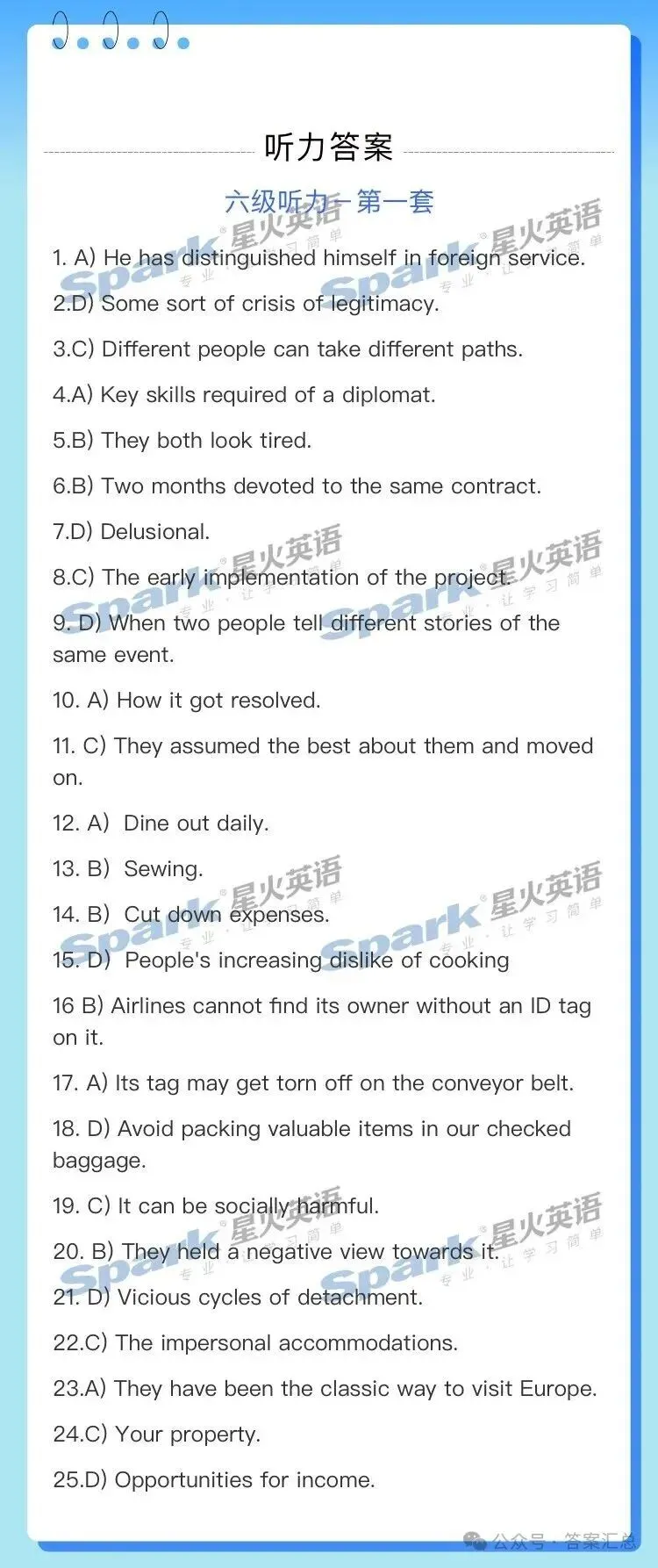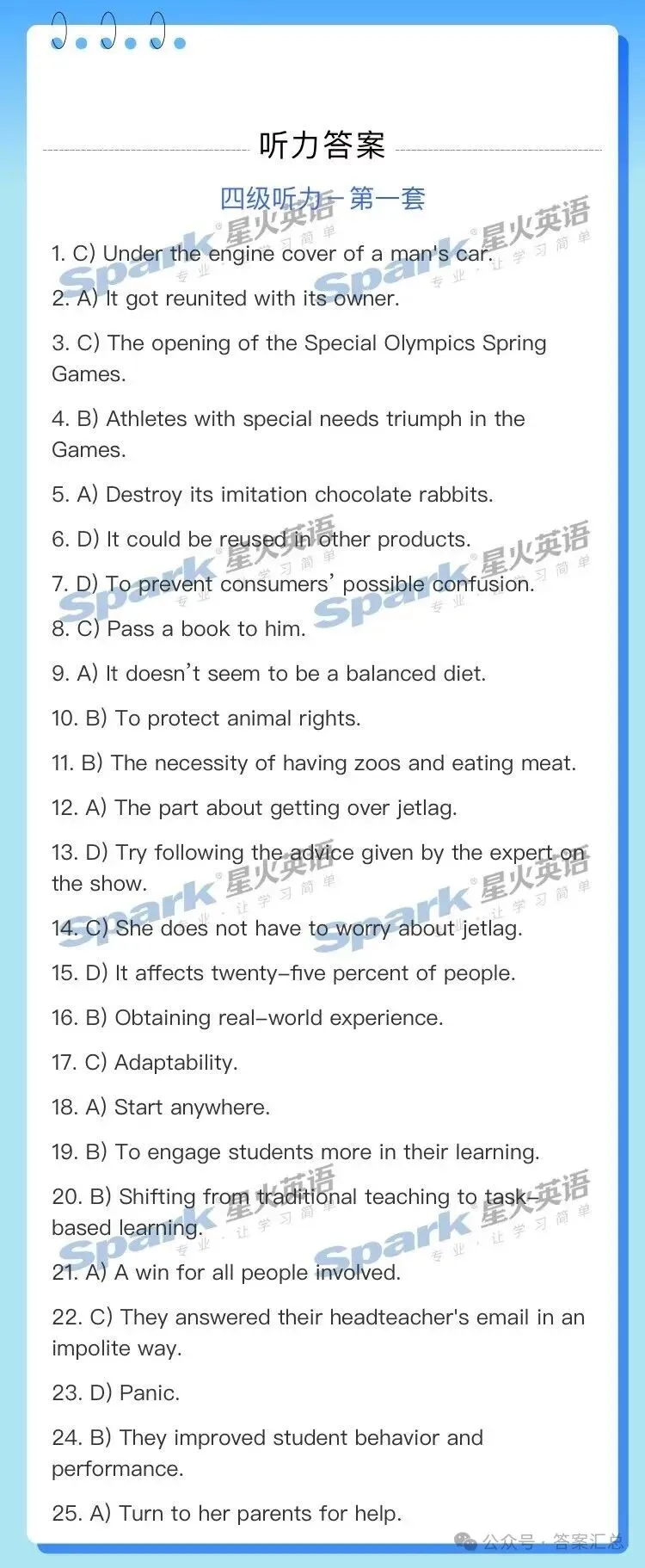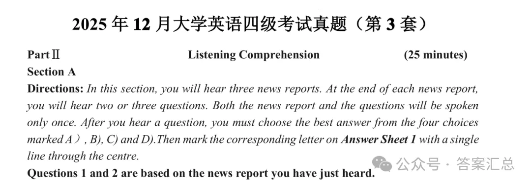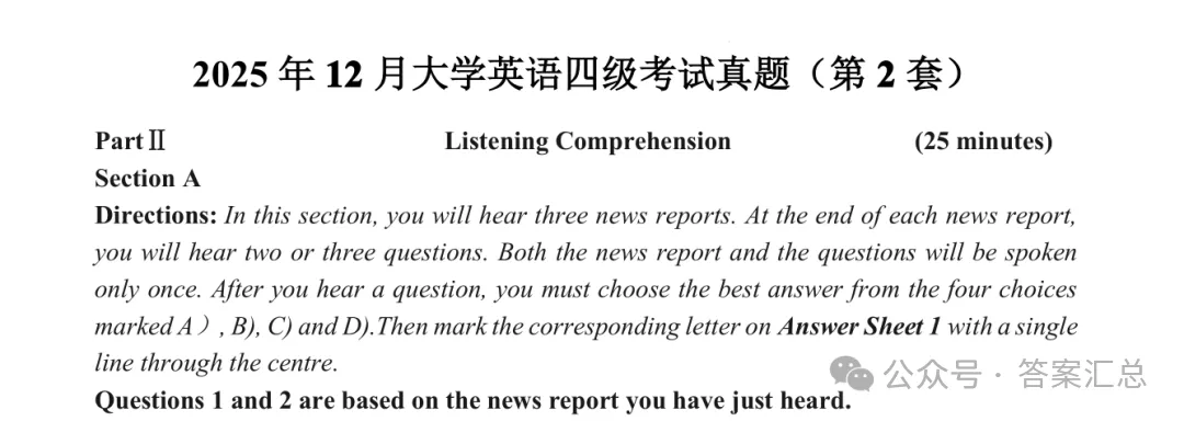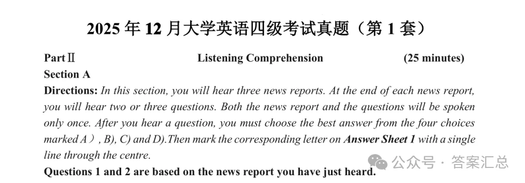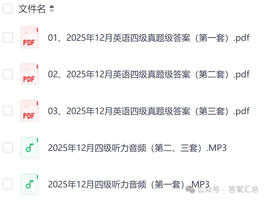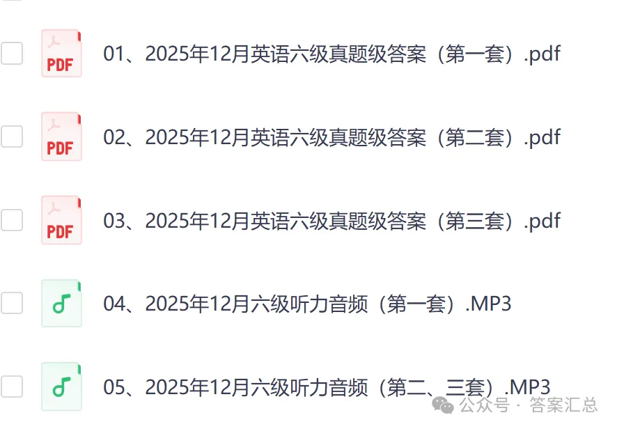 目前,2025年12月英语四、六级考试(CET4、CET6)已经结束,真题答案上传更新中,可以来准备对答案了!