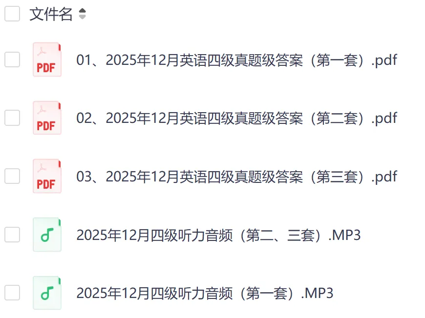 免费获取12月四六级真题答案+2026四六级备考资料今天学姐给各位同学准备的资料是: