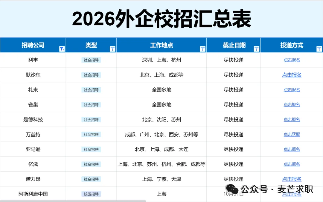 此表格包含了当前的秋招+秋招补录+春招信息