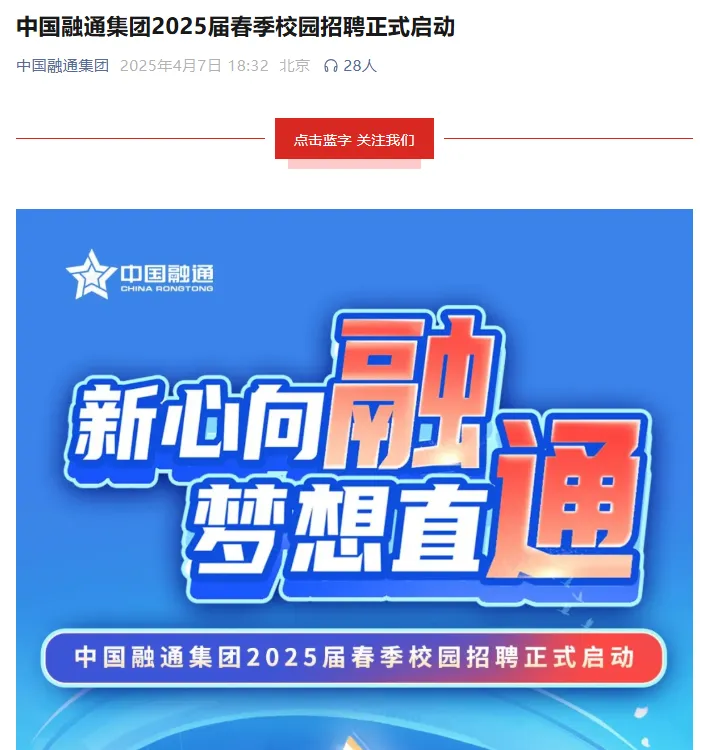 根据往年中国融通集团春招开启时间,2026届春季校园招聘大概在4月初开启: