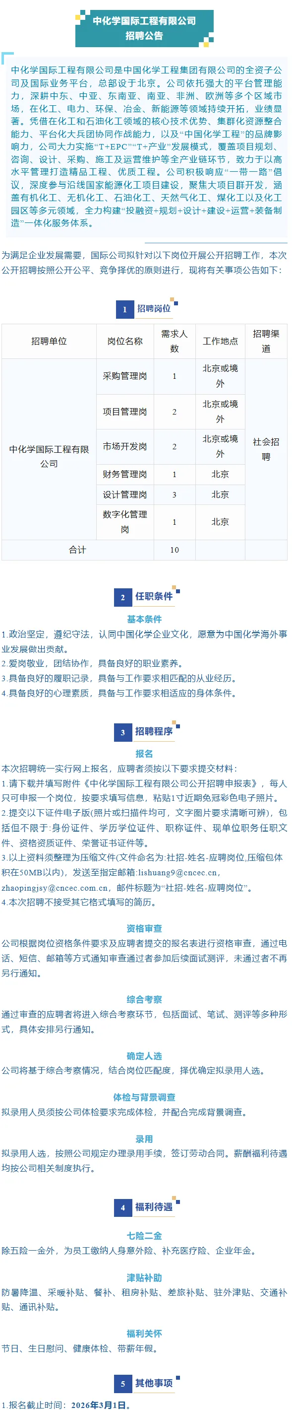 当前位置:首页>央国企招聘真题>中国化学工程所属国际公司招聘公告