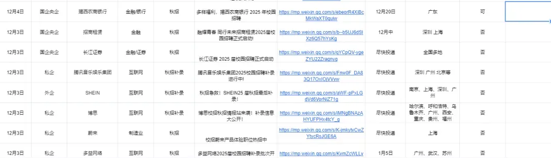 如果你不知道都有哪些企业开放春招,