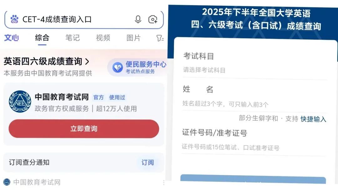 直接搜索四六级成绩查询入口