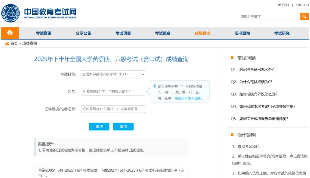 3月10日(周二)9时起,考生可登录中国教育考试网,免费查询、下载本次考试电子成绩报告单。