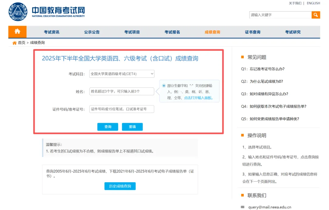 2025年下半年CET全国大学英语四、六级考试成绩