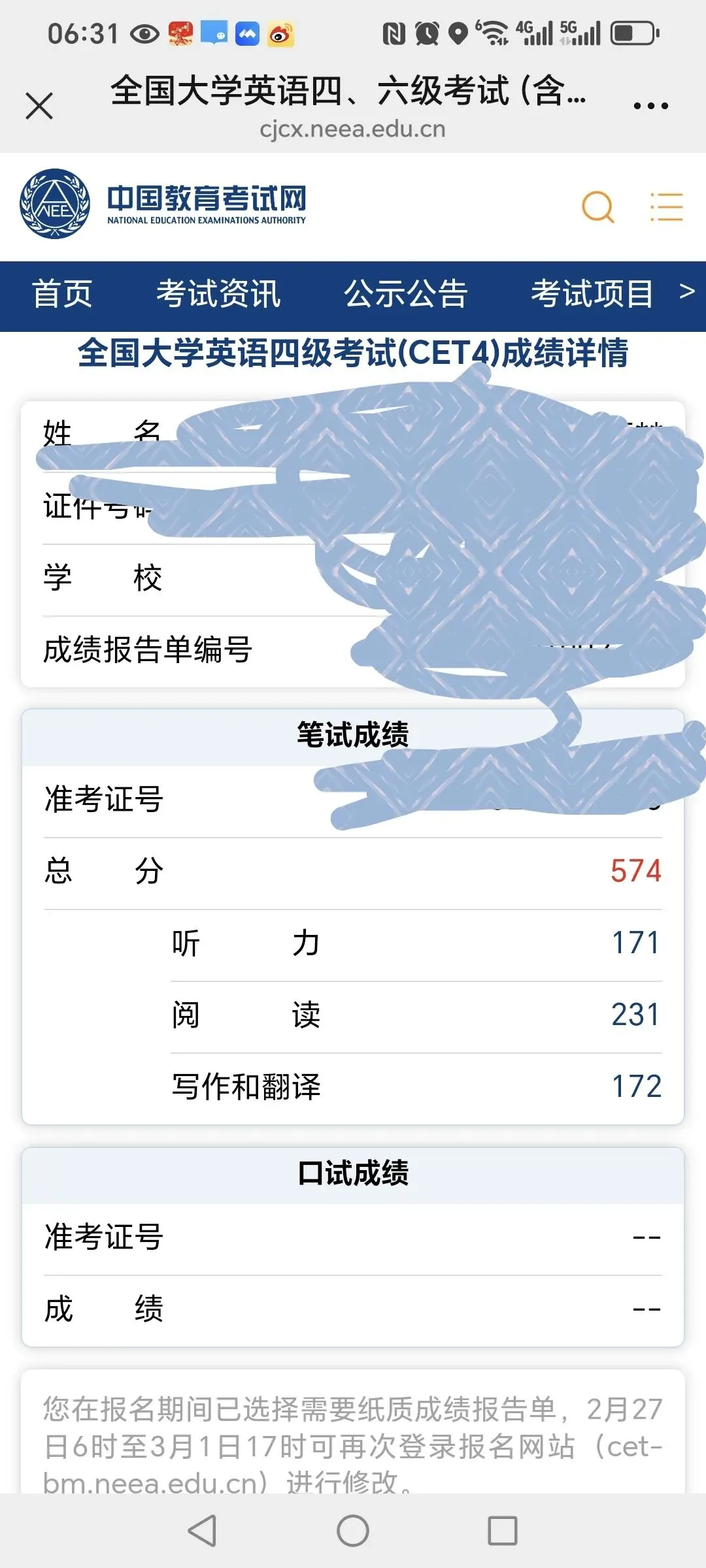 今天早上6点可以查看四六级分数啦,我当妈的也是坐立不安呀,心中知道儿子的四级通过率应该没问题,但总想高一点吧,虽然网上一直在说四级只要通过就可以,要刷六级高分,但心里总希望他四级也考高点,还好,这分数