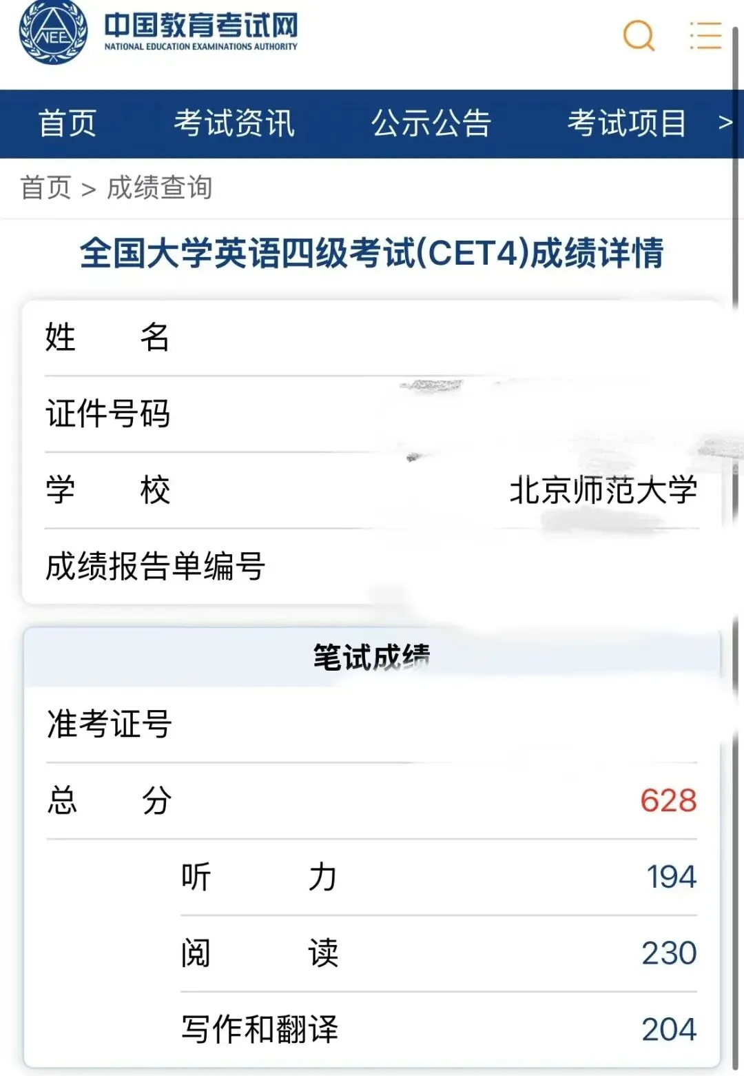 ‼️上图是北师非体育专业保研选手的四六级成绩